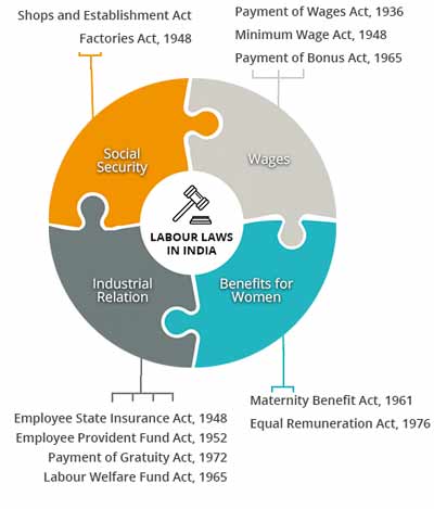 Employee State Insurance Act, 1948, Employee Provident Fund Act 1952, Payment of Gratuity Act, 1972, Labour Welfare Fund Act 1965.